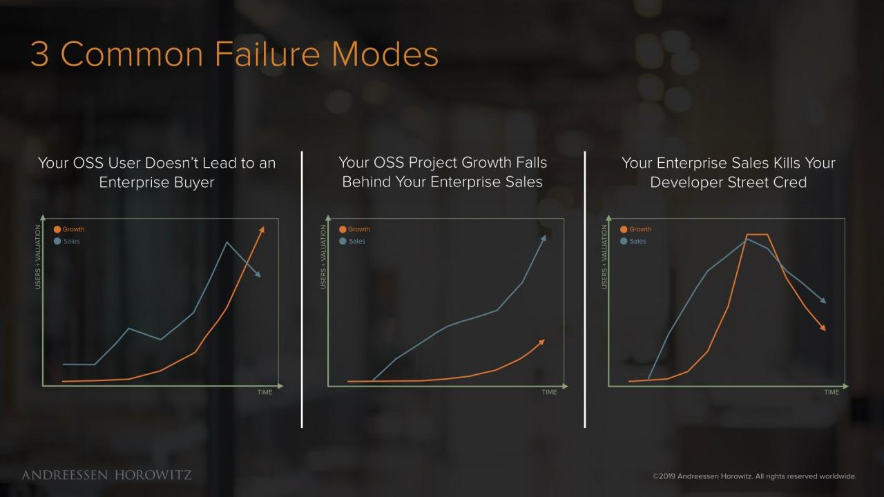 在第二种失败模式中,你的 OSS 项目发展落后于你的企业销售。这时,产品——市场契合度可能不是很好。在第三种情况下,你的商业产品损害了你在开发社区中的信誉。专有的东西可能太多,而开源的东西又太少,这样你的开源项目就会失去生机。