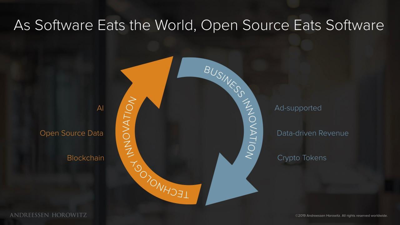 未来,这种良性循环将继续下去。技术上,人工智能、开源数据和区块链是新兴创新的一些例子。下一代业务模型可能包括支持广告的 OSS(就像大型专有企业支持开源项目一样)、数据驱动的收入和加密令牌(将区块链货币化)。