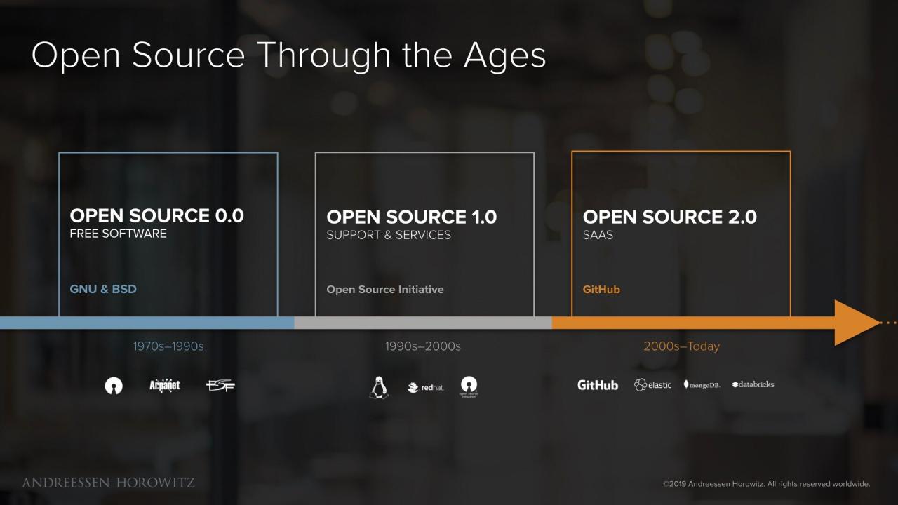 1998 年,开放软件倡议创造了“开源”这个术语,大约在那个时候,第一个真正的商业模式出现了,就是提供 RedHat、MySQL 以及许多其他免费软件的付费支持和服务。这是我们第一次看到一个可以支持这些组织发展的可行的经济模式。
