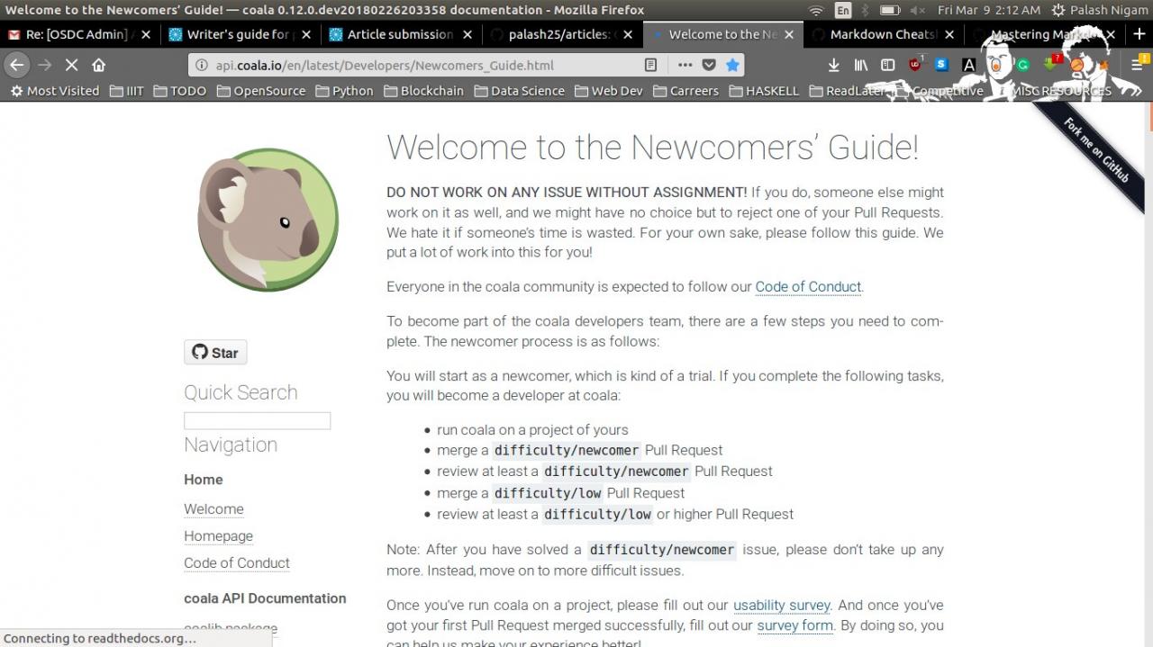 Coala 是一个开源项目的例子。它有自己的教程和文档,让你可以使用它(每一个类和方法)的 API。这个网站还设计了一个有吸引力的界面,让你有阅读的兴趣。